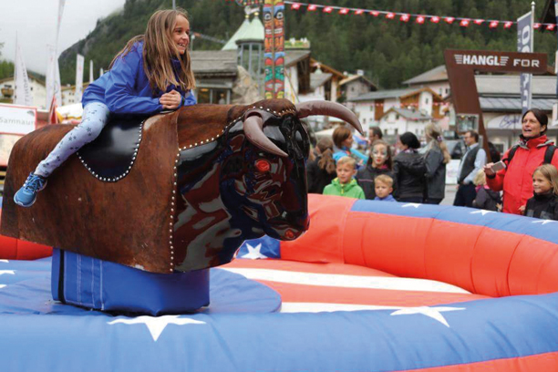 Wer schafft es am längsten auf dem Sattel zu bleiben.